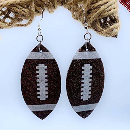 Football Earrings for Women - Glitter Leather Earrings Dangles - 3-Layered Faux Leather Big Statement Earrings - American Football - Glitter & PU Leather - Set of Two - Mall of Style